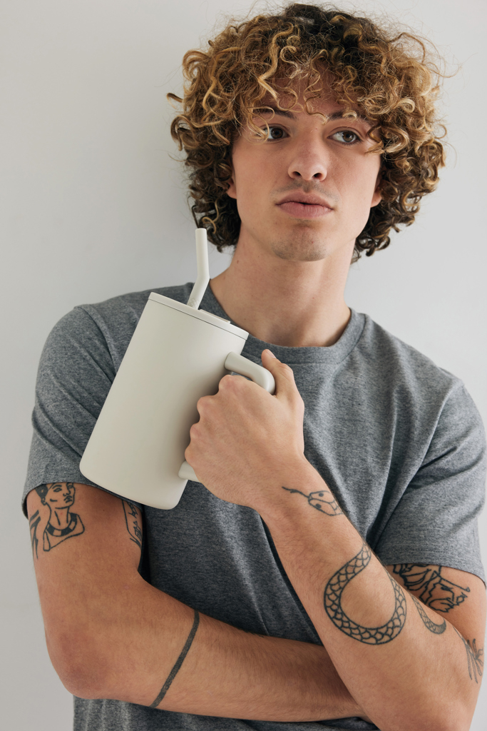 Fabricata din otel inoxidabil reciclat certificat RCS, cana asigura trasabilitatea materialelor si contribuie la un stil de viata sustenabil. Are maner solid, baza lata pentru stabilitate si capac cu functie dubla: poti bea direct prin gura de scurgere sau cu paiul inclus din otel, prevazut cu varf de silicon. Este BPA free, recomandata pentru spalare manuala si vine ambalata intr-o cutie cadou FSC®.