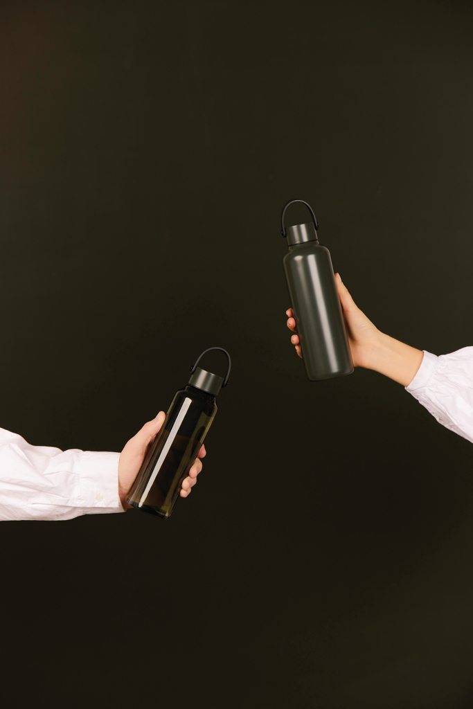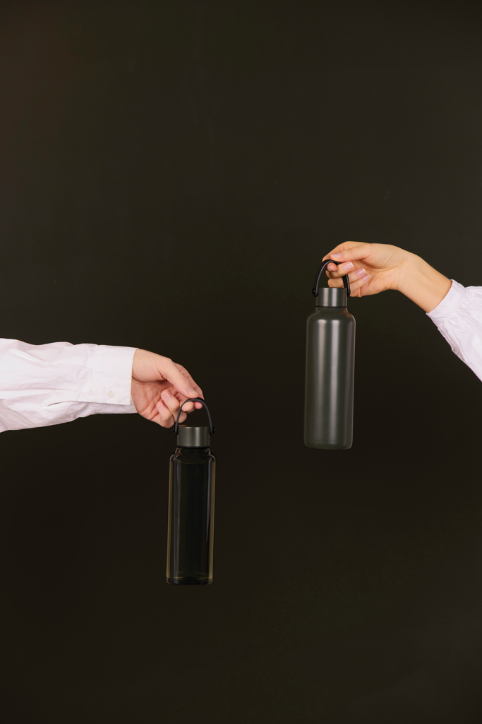 Completeaza-ti rutina zilnica de hidratare cu sticla VINGA Baltimore RCS 550 ml, realizata din RPET reciclat certificat RCS (61% continut reciclat). Designul minimalist si modern defineste colectia Baltimore, imbinand functionalitatea cu eleganta. Sticla este BPA free si destinata exclusiv pentru bauturi reci, fiind ideala pentru birou, sala sau activitati zilnice. Capacul din otel inoxidabil cu detalii PU premium si manerul practic transforma aceasta sticla intr-un accesoriu sofisticat si usor de transportat. Produsul este etans, fara scurgeri, recomandat pentru spalare manuala (nu este compatibil cu masina de spalat vase sau cuptorul cu microunde). Certificarea RCS (Recycled Claim Standard) garanteaza utilizarea autentica a materialelor reciclate si trasabilitatea pe intreg lantul de productie. Ambalata in cutie kraft certificata FSC®.