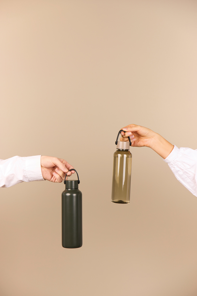 Completeaza-ti rutina zilnica de hidratare cu sticla VINGA Baltimore RCS 550 ml, realizata din RPET reciclat certificat RCS (61% continut reciclat). Designul minimalist si modern defineste colectia Baltimore, imbinand functionalitatea cu eleganta. Sticla este BPA free si destinata exclusiv pentru bauturi reci, fiind ideala pentru birou, sala sau activitati zilnice. Capacul din otel inoxidabil cu detalii PU premium si manerul practic transforma aceasta sticla intr-un accesoriu sofisticat si usor de transportat. Produsul este etans, fara scurgeri, recomandat pentru spalare manuala (nu este compatibil cu masina de spalat vase sau cuptorul cu microunde). Certificarea RCS (Recycled Claim Standard) garanteaza utilizarea autentica a materialelor reciclate si trasabilitatea pe intreg lantul de productie. Ambalata in cutie kraft certificata FSC®.