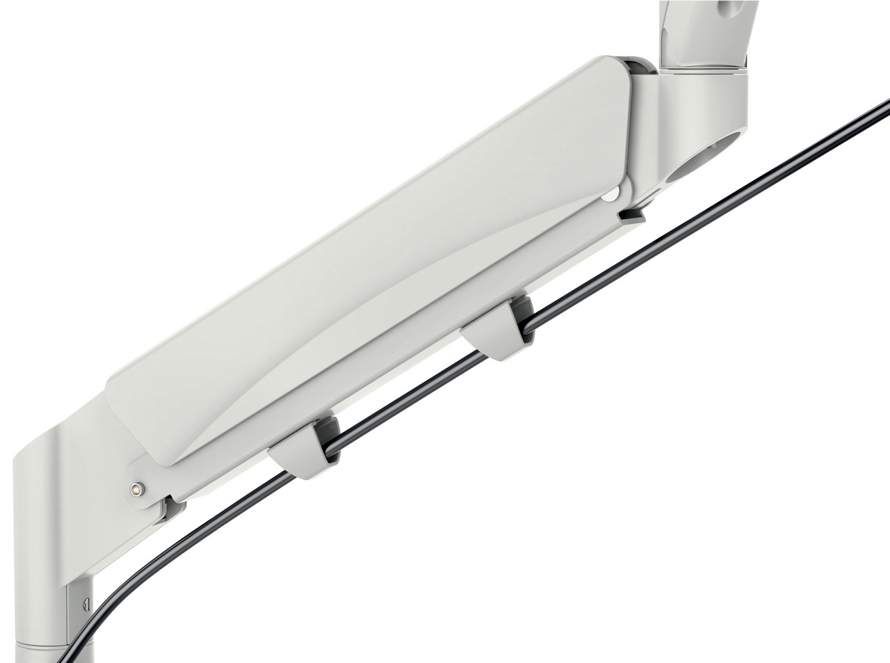 Suport pentru monitor dublu, cu suport special pentru laptop Leitz Ergo, care economiseste spațiu, are un impact pozitiv asupra posturii, promovează alinierea corectă a ochilor și susține confortul gâtului și umerilor atunci când înălțimea monitorului și a laptopului sunt reglate corect și, conform recomandărilor, la poziția ergonomică ideală. Suportul pentru monitor și laptop rămâne stabil la toate înălțimile și unghiurile și poate fi comutat cu ușurință între modul landscape și portret.