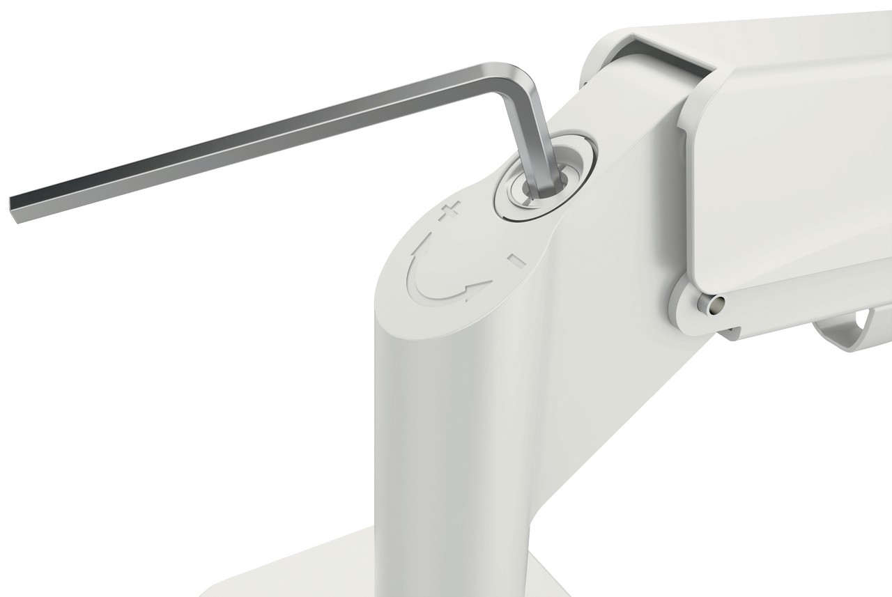 Designul sau robust si compact economiseste spatiu pe birou, iar sistemul de management al cablurilor mentine ordinea. Instalarea este simpla, datorita placii VESA® detasabile cu eliberare rapida (75 si 100 mm) si optiunilor de fixare: clema in C cu insertie siliconica sau montaj prin orificiu (birou cu grosime intre 10–80 mm).