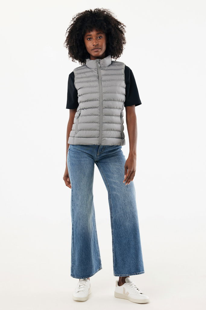 IQONIQ Meru este o vesta pentru femei cu croiala medie, realizata din 100% poliester reciclat post-consum. Materialul usor (70 G/M²) este complet matlasat si umplut cu fibre reciclate tip perla, oferind confort termic excelent si un aspect elegant, perfect pentru stratificare in orice anotimp.